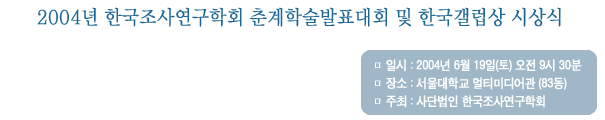 ※ 문의 : 한국조사연구학회 서우석 총무(2210-5637, 019-228-4600, usseo@uos.ac.kr)
